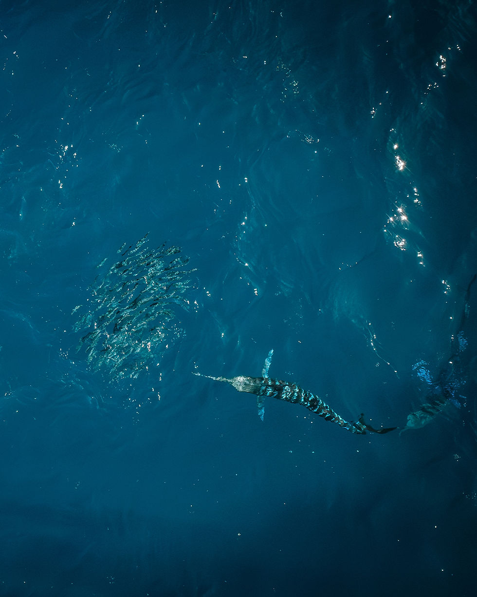 Once you’re in the zone, you jump from bait ball to bait ball searching for fish. Standing on the bow, I felt like a kid again—half pirate, half cowboy—preparing for battle. My sword was a nine-foot fly rod, ready to spar with a hundred-fifty-pound sea monster.